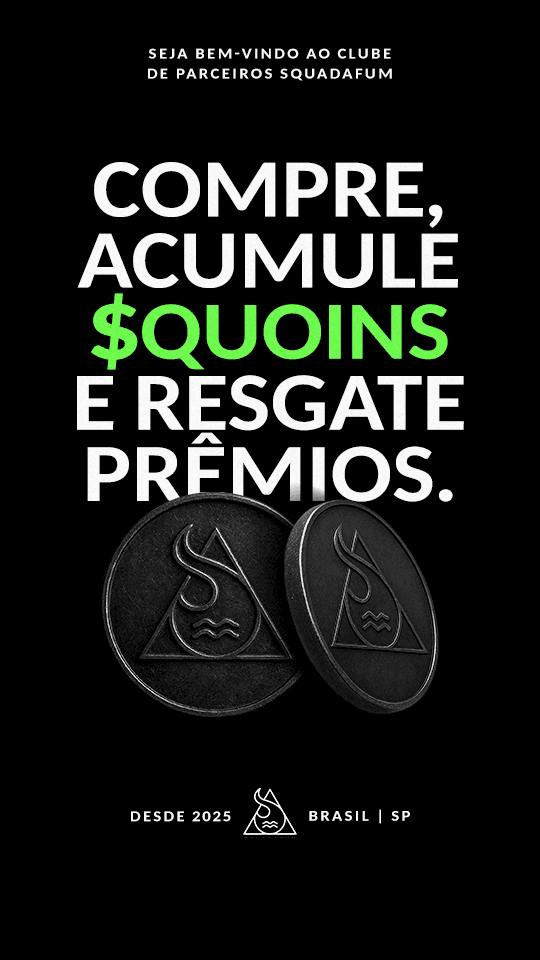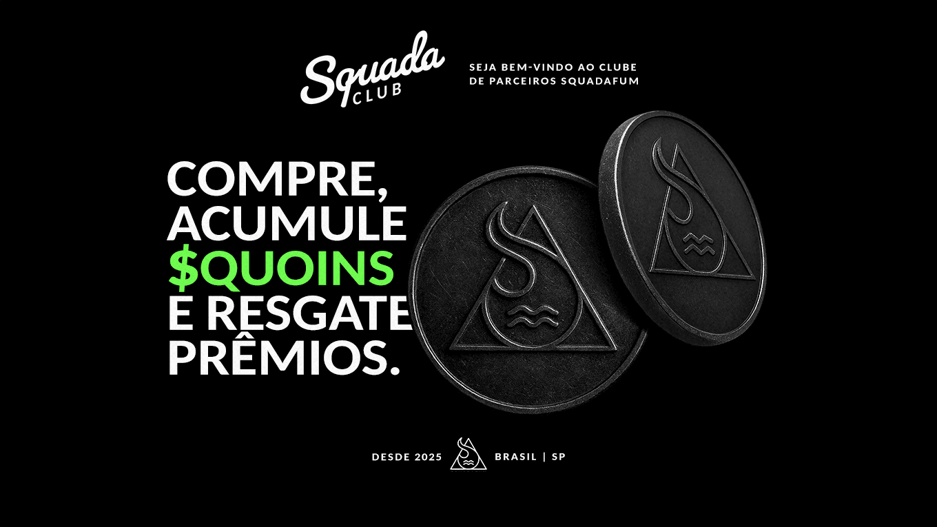 A cada compra voce acumula $quoins, a moeda do clube. Use essas moedas para resgatar produtos da Squadafum.